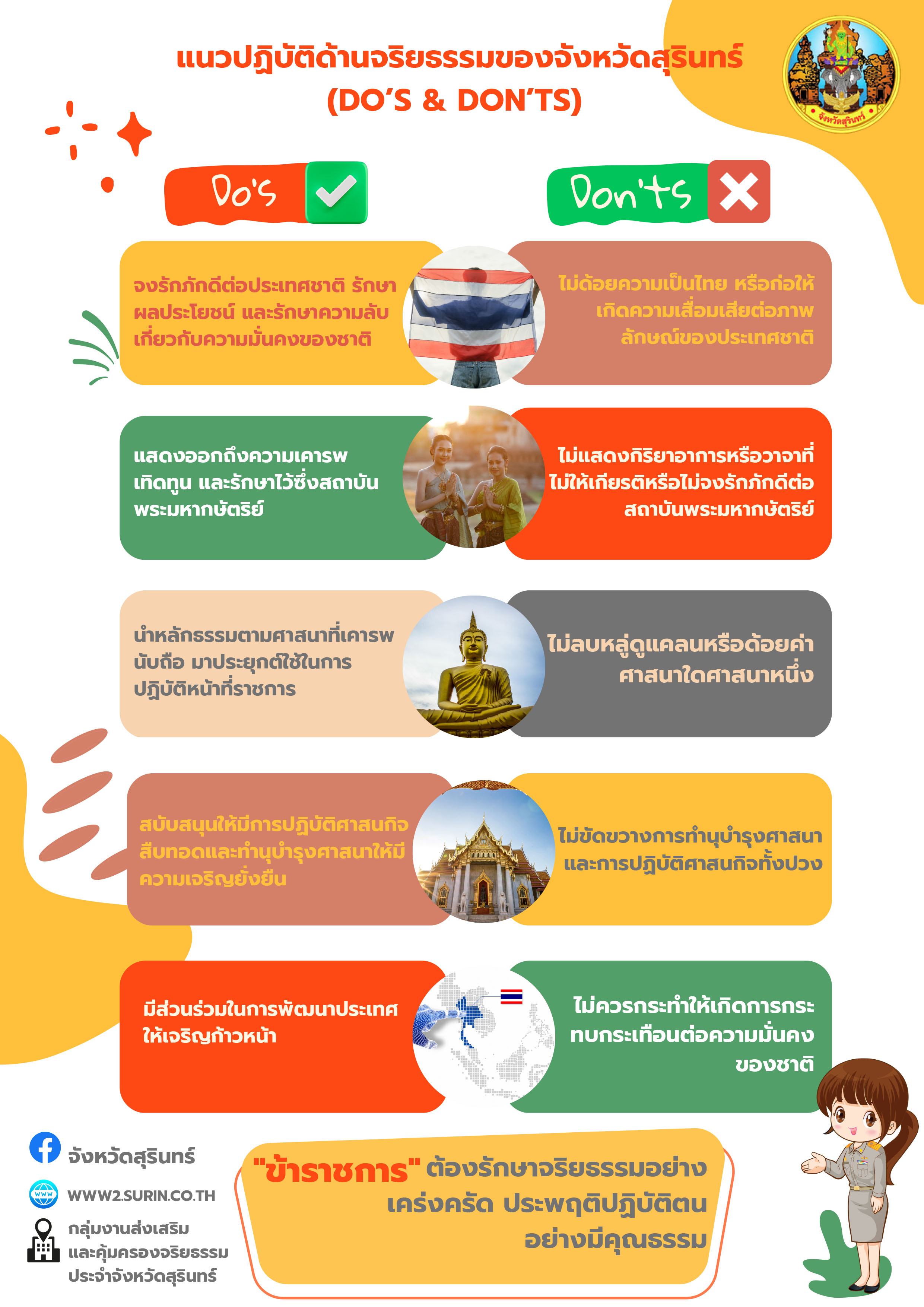 การบังคับใช้ข้อกำหนดจริยธรรมจังหวัดสุรินทร์ และแนวปฏิบัติด้านจริยธรรมของจังหวัดสุรินทร์(Do?s & Don?ts)