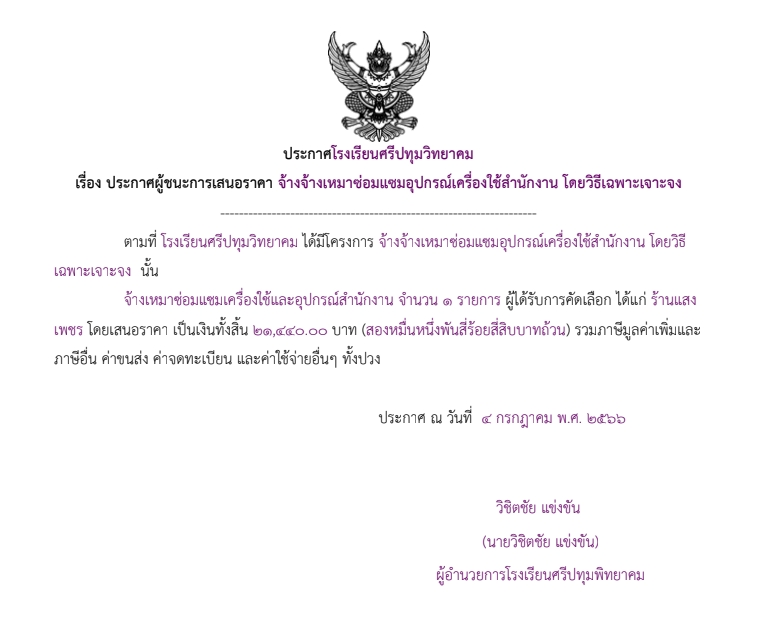 O20 : ประกาศต่าง ๆเกี่ยวกับการจัดซื้อจัดจ้างหรือการจัดหาพัสดุ